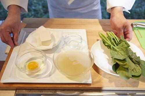 「パラパラのチャーハンには、スープが欠かせない!」とスープのレシピも教えてくれた脇屋シェフ。今回は、家族で美味しく楽しめる「卵と豆腐のスープ」を紹介。パナソニックのIH自慢の火力制御と立ち上がりの早さを最大限に活かしたレシピと作り方のコツを紹介しよう!