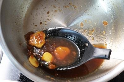 2.鍋にタレ、しょうが、梅干しを入れて温める