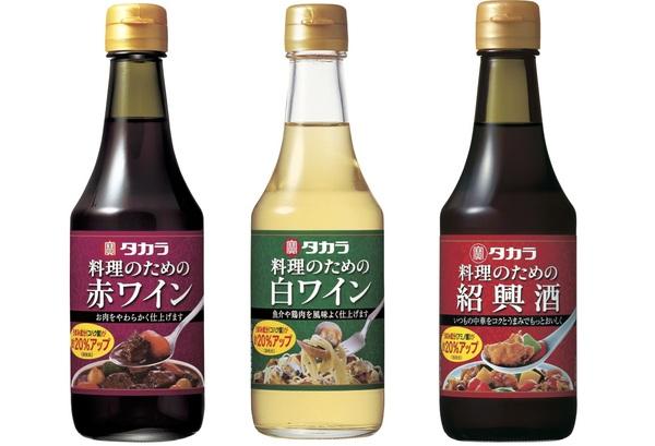 宝酒造では、"タカラ本みりん"と"タカラ「料理のための清酒」"以外にも、プロ顔負けの味わいを叶える酒類調味料を販売している。まずは"タカラ料理のためのワイン"。うまみ成分豊富なワインは、赤白どちらもあるので、料理によって使い分けが可能。さらに"タカラ料理のための紹興酒"は、いつもの中華を格段にレベルアップさせてくれる存在だ。