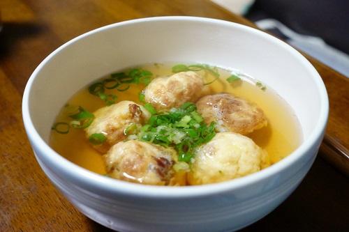 たこ焼きから濃厚なソースを使わずに、あっさりと白出汁で味わえば明石焼き風になる。冷凍たこ焼きはあらかじめ解凍し、好みの味わいの白出汁で味わうことができる。これをさらにアレンジさせて、スープにしてもよい。三つ葉やねぎを散らして吸い物風に盛りつければごはんにも合う。