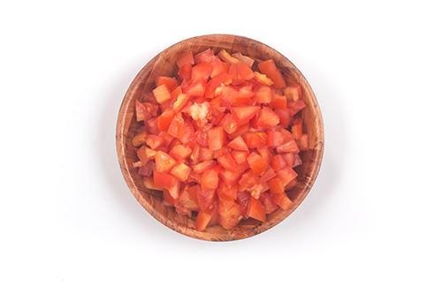 トマトとキムチは一口大くらいの大きさに切る。ちなみに、キムチといえば白菜キムチが定番だが、違うキムチで作っても美味しい。トマトとキムチを和えたら、仕上げにごま油とごまを加える。皿に盛り付けたら完成だ。