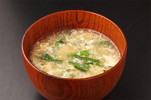 つるむらさきの味噌汁に卵を加える際は、味噌を溶いてから、溶いた卵を加えるのがいいだろう。その際に、火を少し強めにして溶き卵を回し入れるとふんわりとした卵に仕上がる。