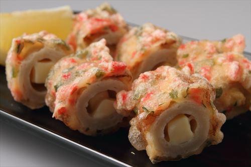 揚げワンタンやちくわの磯辺揚げに、チーズを使うと美味しい。ここでさらに紅生姜も使うと、また違った味に仕上げられる。刻んだ紅生姜を衣に混ぜ、揚げるだけでよい。彩りがよくなり、揚げ物をさっぱりと食べられる。チーズの風味との組み合わせを楽しみたい。