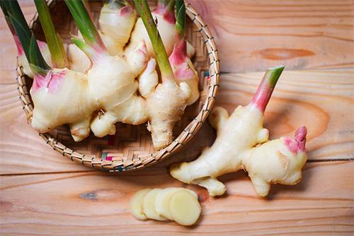 酢漬けの新生姜は、甘酸っぱい風味が淡泊な食材とよく合う。天ぷらにする際には、新生姜のみで作ってもよいが、白身魚やささみなどにのせて揚げたり、豚肉で巻いて揚げたりしても美味しい。