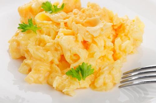 スクランブルエッグにチーズを加えることで、ふわふわ卵にとろとろのチーズが合わさってより食欲をそそってくれる味わいが楽しめる。朝食にそのまま食べてもいいが、パンに挟んで食べても絶品だ。