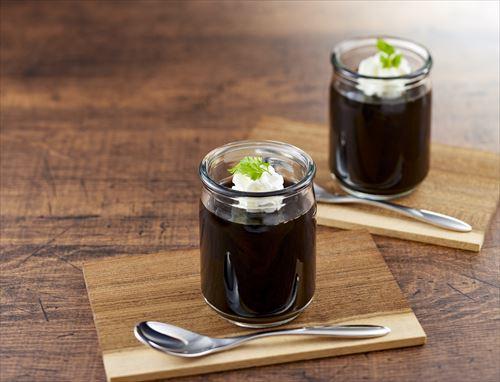 ゼリーの中でもとくにカロリーが低いのがコーヒーゼリーである。100gあたりのカロリーは48kcal、同量のオレンジゼリー89kcalやムースの218kcalと比較してもかなり低いことがわかる(※1)。作り方も簡単である。好みのコーヒーを用意し、溶かした砂糖を加える。ゼラチンもよく溶かして混ぜ、冷蔵庫で冷やせばできあがる。