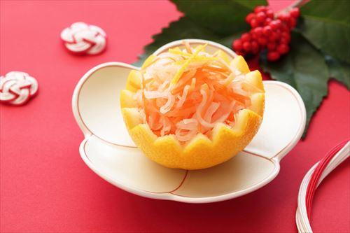 なますは、大根と人参の千切りを甘酢で漬けて食べるのが定番だが、ゆずの果汁を加えることで、よりさわやかな風味のなますが完成する。ゆずは果汁だけではなく、皮も千切りにして加えることで彩りをよくしてくれるだろう。また、ゆずを使った加工品を加えるだけでも、ゆずの風味をプラスすることが可能だ。ほかにも四季折々のさまざまな柑橘類を加えてさわやかな味わいのなますを作ってみてもらいたい。