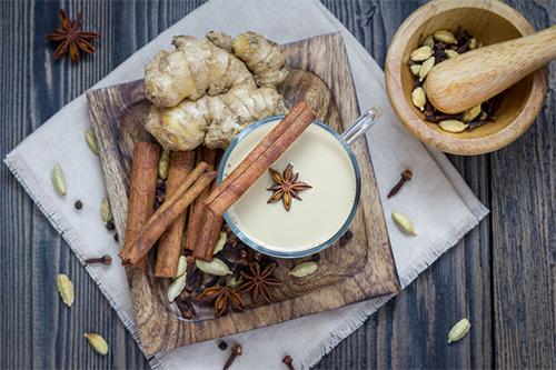 スパイスを加えた新生姜シロップを炭酸水で割れば、本格的な味のジンジャーエールを簡単に作ることができる。また、シナモンとクローブ、カルダモンを配合して作ったシロップは、チャイにも使用できる。
