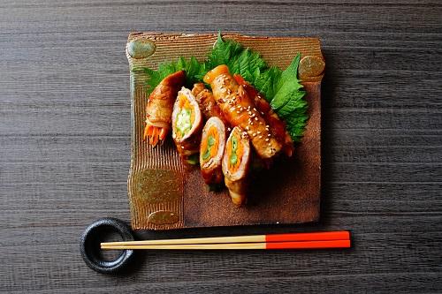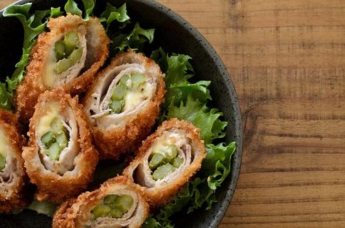 ごはんとも酒とも相性バツグンなのが、いんげんの肉巻きにパン粉を付けて揚げる肉巻きフライだ。サクッとした軽い食感で食べやすく、ソースやタルタルなど好みの味付けで楽しめる。