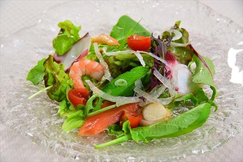 フレンチの前菜でおすすめなのが、サーモンと野菜を細かく切ってドレッシングで和えたもの。きゅうりや玉ねぎとサーモンをフレンチドレッシングで和えれば見ためにも美味しい前菜のできあがりだ。