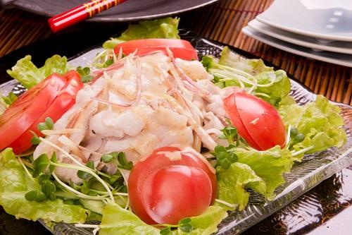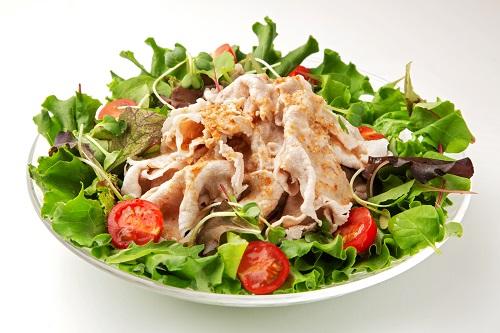 あっさり野菜の定番といえば、レタスとトマトだ。この組み合わせにごまだれを合わせてみよう。具材のあっさりした味や食感と、ごまだれの風味を両方味わえる。冷えた豚肉にもよく合い、ボリュームがありつつもぺろりと食べられる。