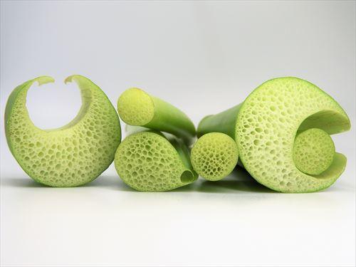 香りや苦味などもなく、いろいろな料理に使うことができる。生のまま食べるとシャキシャキした歯ごたえがあり食感が面白いのが特徴だ。また、加熱するとスポンジ状の断面が柔らかくなり食べやすくなる。