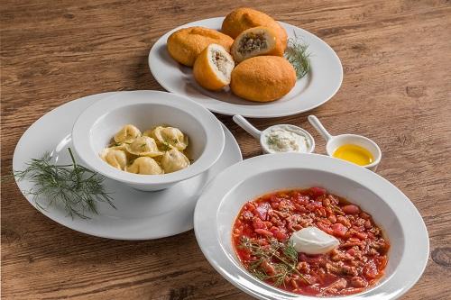モチモチ食感の自家製生地にバターを練り込んだ、オリジナルの一口サイズの水餃子となっている。生地はツルっとしていて、食べると口の中いっぱいに肉汁の旨みが広がり美味しくいただける。サワークリームをつけて食べるとよりロシアらしくなるので、おすすめだ。