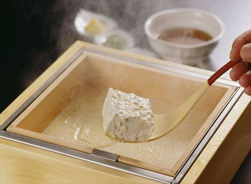 重曹を加えるとトロトロになり、豆乳鍋のように味わえる湯豆腐。豆腐を食べ終えたあと、だしの旨みたっぷりのスープが残ったら、雑炊にして食べるのがおすすめだ。