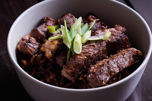 チャジャン麺とは、韓国風のジャージャー麺のこと。麺の上にチュンジャンと呼ばれる黒味噌で味付けをした具材がのっているもので、これをとにかくよく混ぜて食べる。モッパン動画や韓流ドラマでしばしば食べられているのをきっかけに、日本でも若者の間でちょっとしたブームになったメニューだ。そもそもは、中国のジャージャー麺がルーツで、それが韓国に渡り、ローカルフードとして確立されたといわれている。使われている麺は、もともとは手打ち麺だったと想像されるが、現在はインスタント麺や中華生麺が主流である。