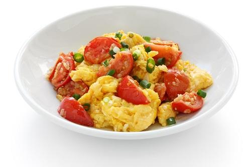 スクランブルエッグに大きめに切ったトマトを加えることで、ジューシーな味わいを楽しむことができる。トマトは一口大に切り、卵を炒めてから加えるのがおすすめだ。一緒にチーズやベーコンを加えれば、よりコクのあるアレンジになる。