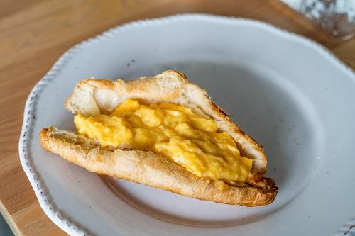 マヨネーズを入れたスクランブルエッグは、食パンに挟んでサンドイッチにしてみるのもおすすめだ。ボリュームも満点で朝食に喜ばれることだろう。また、いつもの卵サンドとはひと味違う味わいが楽しめるだろう。