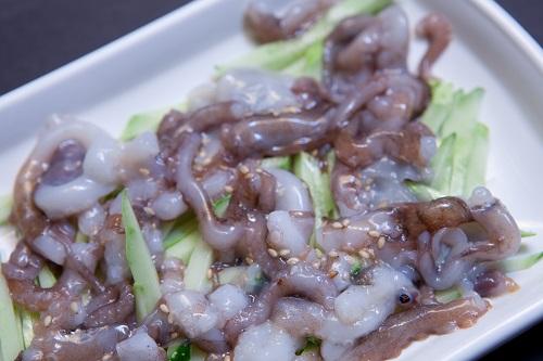 新鮮なタコの旨みを味わえるとともに、口の中で吸盤が吸い付く感触とコリコリの歯ごたえが楽しめることだろう。注意点としては、ごま油をつけないと口の中で吸盤の吸い付きがきつくなり、食べにくくなってしまうことが挙げられる。