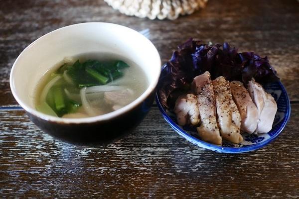- 煮汁は4~5倍に水で薄め、お好みの野菜と刻んだ蒸し鶏を入れて温めるとスープに