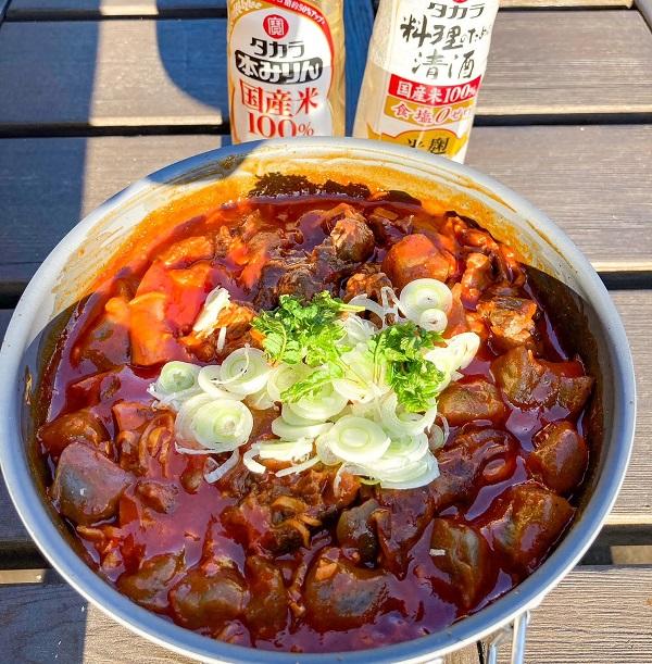 今回の応募レシピは、「二度おいしい牛すじこんにゃくの赤どぶ煮込み」。手間をかけた分だけ、おいしくなる牛すじをタカラ本みりんとタカラ「料理のための清酒」のパワーを借りて、さらにうまい煮込みに。甘辛バランスの良いコチュジャンでアクセントを加えたところもポイント。酒のアテにもご飯のお供にも最適なこってり味に仕上がっている。具材が減ってきたら豆腐を足してアレンジできるところから、「二度おいしい」のネーミングにしたそう。