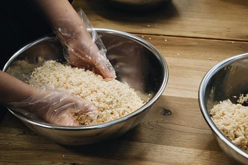 糀に対する塩の使用割合を塩切り歩合といいます。これは、味噌造りでは塩は麹と混ぜてから蒸大豆と混合されるからです。塩を加えた麹を塩切り麹とよびます。
