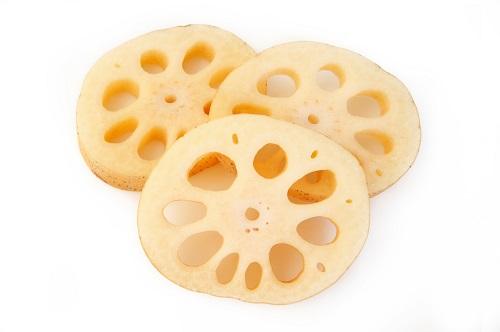 れんこんを輪切りにする際は、厚さによって食感が異なる。厚く輪切りにした場合は、煮物などにするとホクホクとした食感が楽しめる。さらに薄く輪切りして酢水につけ、軽く火を通せば、サラダなどでシャキシャキとした食感を楽しむことができるだろう。