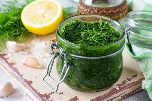 ディルはオイルに漬けてソースとして保存が可能だ。葉の部分を瓶に入れ、浸る程度のオリーブオイルに漬ければ完了である。保存期間は1ヶ月程度だが、瓶を開けたらなるべく早めに使ってしまおう。