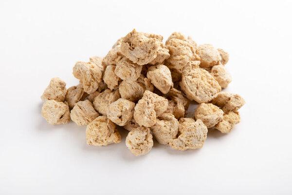 大豆ミートとは、その名の通り大豆を主原料にした肉のような加工食材のこと。大豆からの油分を絞ったものを加熱、加圧、乾燥させて作るのが一般的で、見た目はまるでひき肉のよう。ソイミート、ベジミート、大豆タンパクと呼ばれることもある。