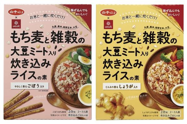 今回新登場した『もち麦と雑穀の大豆ミート入り炊き込みライスの素』には、雑穀市場でシェアNo.1を誇る、株式会社はくばくのもち麦が採用されている。さらに、はくばく社のWEB調査で消費者から人気の高かった丸麦、黒米、発芽玄米、大豆といった雑穀がバランスよく配合されているのも、健康を志向する人にとって嬉しいポイントだろう。