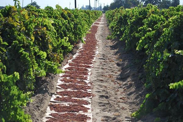 カリフォルニア・レーズンの原料のほとんどは、ナチュラル・シードレスという種がなく、皮の薄い緑色のぶどうだ。年間を通して手作業で手入れを行い、夏から秋にかけて糖度が約21%になったところで、収穫期を迎える。