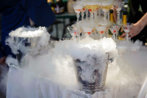 液体窒素とは、窒素を低い温度まで冷やして液体にしたものである。なんと約-196℃と、ドライアイスよりもさらに温度が低い。日常生活で目にする機会は少ないが、食品の瞬間冷却や血液の凍結保存、金属加工や電子機器製造などさまざまなシーンで活用されている。