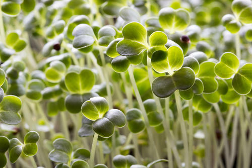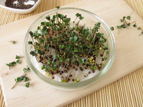 スプラウトの中では、定番中の定番。大根の種を発芽させたもの。シャキシャキした食感と、ピリッとした辛味が料理にアクセントを加えてくれる。 - マスタードスプラウト