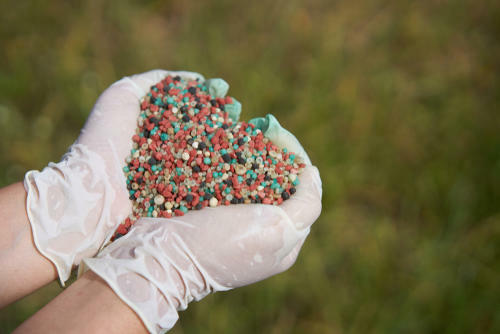 追肥の1回目は、植え付けてから2週間後、本葉が8~9枚になった頃。化成肥料を1株あたり3g程度、株元にまいて、土に混ぜ込んでおく。
