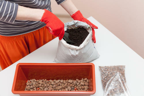 種生姜の植え付け時期は4月~5月頃。生姜は成長するのに多くの水分を必要とするが、水が多すぎると根腐れするので、水はけのよい土を選ぶこと。プランターの底に鉢底石を入れると水はけが良くなるので、その上に培養土を入れるとよい。