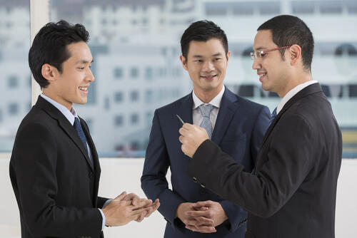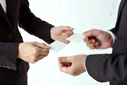 まず、名刺の渡し方のポイントは、起立した状態で、相手としっかり向かい合って行うことだ。椅子などに座ったまま渡したり、テーブル越しに渡したりするのはマナー違反だと覚えておこう。