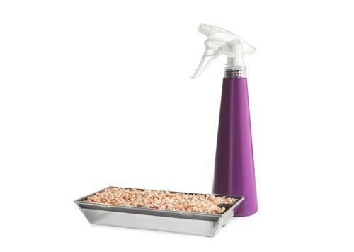 大根の種はとても小さいので、霧吹きで水を吹きかけて水やりをする。アイロンかけの際に使う霧吹きがあればOKだ。
