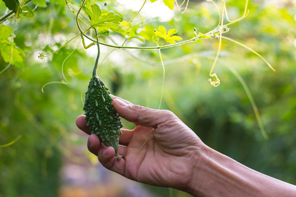 もちろん、それをしなくても肥料と水を十分にやっていれば、ゴーヤはなるのでご安心を。実がなり始めたら成長は早く、次から次へできる。果実が膨らみ、濃い緑色になったら収穫しよう。