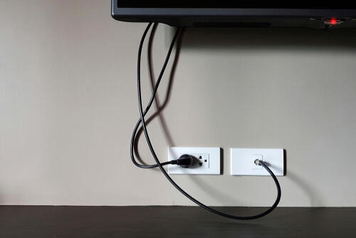 最も理想的なのは新築やリフォームの際に、テレビの裏の壁にコンセントとアンテナ端子を用意することだ。ケーブルはテレビの裏に完全に隠すことができるので、すっきりと設置することができる。コンセントやアンテナ端子はあとから増設することも可能だが、業者に工事を依頼する必要がある。