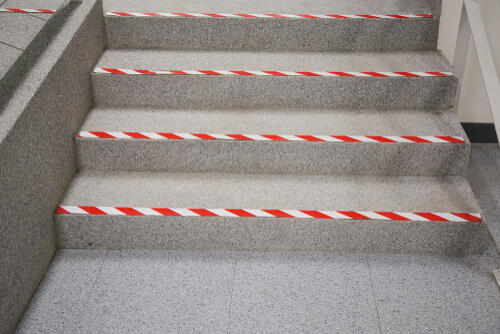 滑り止めテープを使った施工方法は裏紙を剝がして貼るだけなので、だれにでも簡単にできる方法だ。ロール状で長さをカットして使うタイプと、一枚一枚シール状になっているタイプの滑り止めテープがあり、ロールタイプの滑り止めテープは階段の角にライン状に張り付けて使う。シールタイプはライン状に貼り付けるのはもちろん、タイル1枚おきに貼るといったような使い方もできる。どちらのタイプも階段を降りるときに足がテープに引っかかるので、滑りにくくなるだろう。