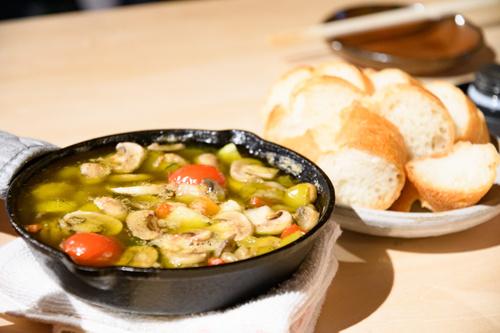 スキレットを使うと、外はパリッと中はジューシーな餃子や、野菜のラクレットなど、おいしい料理を楽しめる。そのほか、アヒージョもおすすめだ。作り方は簡単で、スキレットにオリーブオイルをたっぷり入れて、シーフードやきのこなどの具材とアヒージョの素を入れるだけで完成だ。スキレットをそのまま卓上に出し、熱々のアヒージョを楽しめるため、ぜひ試してみてほしい。