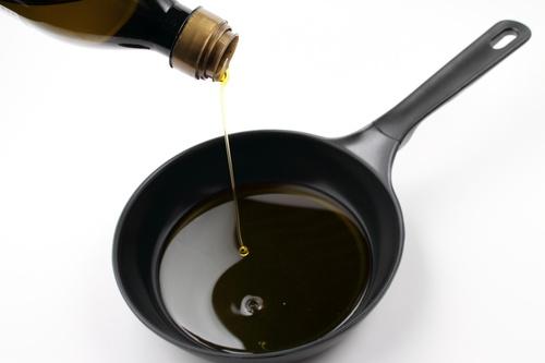 オリーブオイルは取っ手や縁も含めて、文字通り「全体」に満遍なく塗ってほしい。また、野菜は鉄臭を取り除くためのものなので、ネギ、玉ねぎなどの香りがあるものがいいだろう。