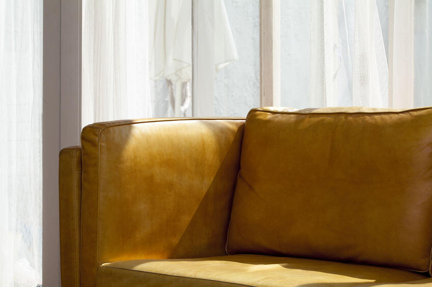 レザー素材のソファは、何といっても部屋の雰囲気をグレードアップさせてくれる高級感がポイントだ。液体の汚れに強く、サッと拭き取るだけでよい。経年変化による風合いの移り変わりも楽しめる。