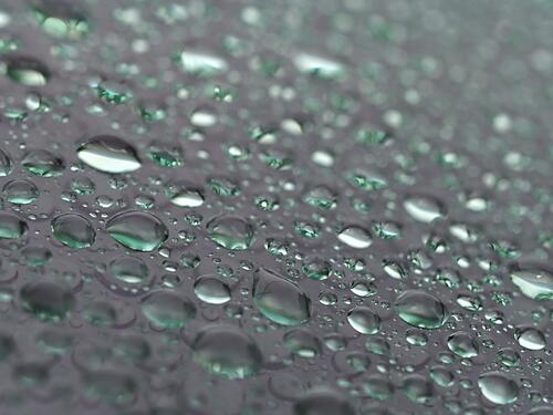 車のガラスの上で水滴が「転がる」のが撥水性、「流れる」のが親水性。親水性は、水がなじむため水滴が玉のようになりにくく、文字通り流れていく感じになる。