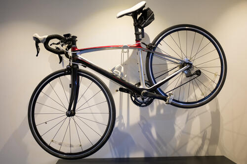 ネジを使って、壁や柱などに固定するタイプのスタンド。自転車は、フックに引っ掛けるだけでOKなので手軽だが、穴あけの必要があるため賃貸物件には向かないだろう。タイヤは浮いているので床が汚れない、おしゃれに見せられるといった特徴がある。