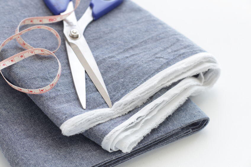 - 汚れた部分の布をハサミでカットし、下端を三つ折りにしてホチキスで処理しておく。