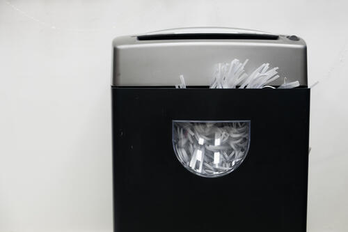 シュレッダーが詰まったときの原因の多くは「過剰投入」だ。お使いのシュレッダーが一度に処理できる枚数を確認しておこう。頻繁に詰まる場合や古くなってカッターの切れ味が落ちているシュレッダーは、詰まり防止機能などを搭載したシュレッダーへの買い替えをおすすめしたい。
