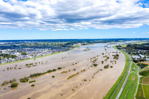大きな川は多くの流域から水が集まり、時間をかけて水位があがる。氾濫や決壊が発生すれば浸水は広範囲に広がってしまい、水がひくまでに時間もかかるので厄介だ。