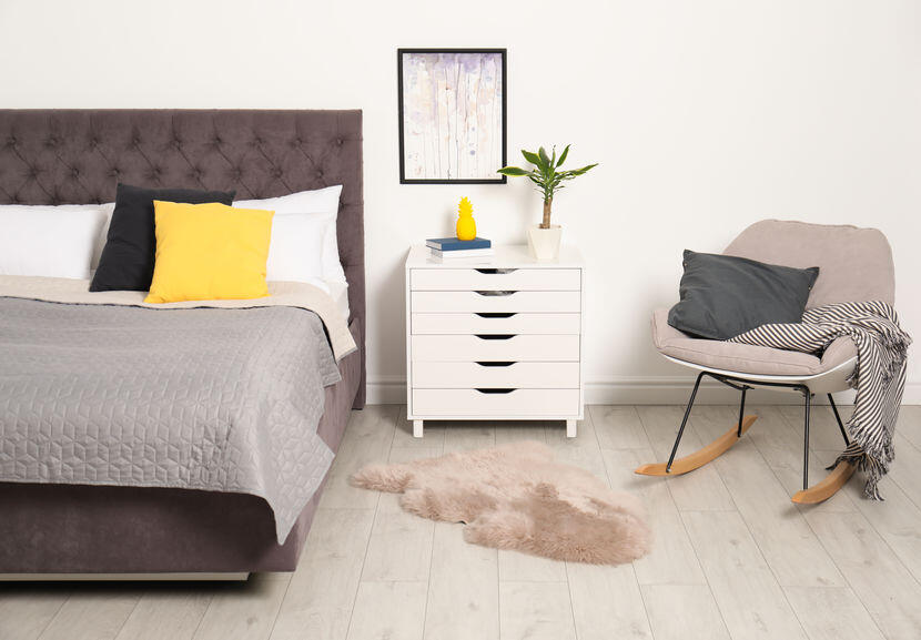 チェストには、キャスターが付いているものもある。このタイプは簡単に移動できるため、掃除やベッドサイド以外で使用したいときにも便利である。