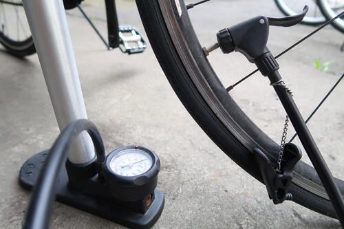 自転車のタイヤに空気を定期的に入れることで、パンクは予防できる。乗らなくても空気は減っていくので、定期的なチェックが必要だ。