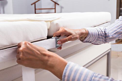 ベッド2台を並べて1台として使う場合には、寝ている間にベッド同士がズレて、中央に隙間が空いてしまう。マットレスバンドはズレないようにするために、側面をバンドで固定してしまおうというアイテムだ。